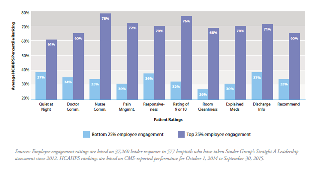 As Dan says in his book titled Advance Your Emergency Department: Leading in a New Era, “Consistent collaboration is the ‘secret sauce’ that pulls the whole model together and differentiates a truly great ED from a good one.” According to Studer Group’s Straight A Leadership assessment of over 37,000 leader responses in 577 hospitals, higher workforce engagement directly results in high patient engagement.