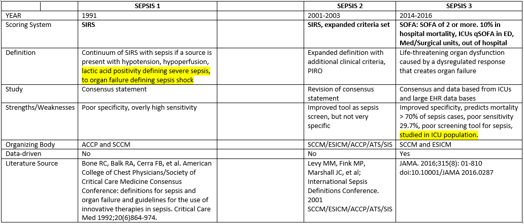 SEPSIS DEFINITIONS FROM 1991 – 2019