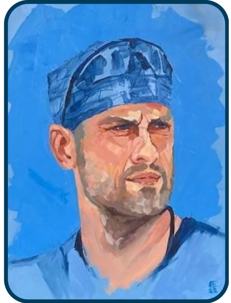 “Dr. Steve puts so much into helping people daily; it must be scary and difficult. I couldn’t help but think, ‘How much love are they getting back?’ I want the people who took care of me to know how much I appreciate them. That was the energy I took when I began to paint Dr. Steve.”