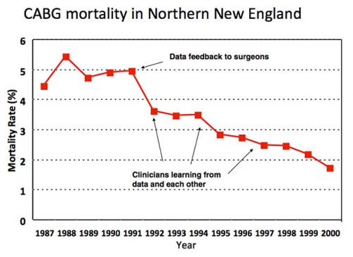 When I arrived in Hanover NH for my surgical internship in 1989, the chief of cardiac surgery at Dartmouth Hitchcock Medical Center, Dr. Stephen Plume, was apoplectic. The Health Care Financing Administration (now Center for Medicare and Medicaid Services) had just publicly released hospital mortality rates based on national Medicare data and DHMC was ranked near the very bottom. Plume was convinced that the rankings reflected bad data—that noisy claims data and subpar risk adjustment had failed to account for the fact that DHMC was operating on higher risk patients than its peers. The Northern New England Cardiovascular Disease Study Group was founded to set the record straight. Led by Plume and Dartmouth epidemiology professor Gerry O’Connor, cardiac surgeons and cardiologists from 5 hospitals in Maine, New Hampshire and Vermont began to systematically collect data about their patients, practices, and outcomes. The data were externally audited (to ward off any suspicions about cheating) and clinically detailed enough to allow for rigorous case mix adjustment. Regrettably, at least for Plume, the NNE group’s analysis of its first 3,000 CABG patients indicated that HCFA’s previous analysis was basically correct: Dartmouth really did have surgical mortality rates 2- or 3-times higher than its regional competitors. With Dartmouth cardiologists threatening to start referring patients elsewhere, Plume needed to address concerns about his own program. The NNE group quickly pivoted and refocused its goals around improving care across the region, rather than fighting HCFA. By then a health services research fellow with the NNE group, I had a front row seat to its improvement work. Step one was performance feedback, giving every hospital and surgeon detailed information (still confidential) about his outcomes against hjs peers’ (all the surgeons were men at that time). Almost immediately, region-wide mortality rates with CABG fell by almost one-third, from 5.0% to 3.5%. Because this decline preceded any measurable change in practice, I asked my mentor whether this was simply Hawthorne effort. Retorted Professor O’Connor: “John, I worship at the altar of Hawthorne.” Step two involved surgeons and their teams learning from each other. Every hospital sent a delegation for a 1-day site visit to every other hospital. The surgeons spend most of their time watching their colleagues operate; the cardiac nurses were mostly in the intensive care units and wards. On almost every visit, the teams picked up a handful of “good ideas” and “tricks” for redesigning care. And third, the NNE group started learning from their data. Leveraging a very large, detailed clinical registry, epidemiologists and statisticians began to explore relationships between specific processes and outcomes, addressing fundamental clinical questions: When should I stop heparin anticoagulation and beta blockers before surgery? In which patients is an internal mammary graft imperative? Intraoperatively, which drugs and regimen for myocardial protection work best? How fast can I safely extubate patients after surgery? Based on systematic empirical analyses, the group began to delineate optimal practices and implement them uniformly across the region. End results of the NNE group were remarkable. Variation in mortality rates—originally 3-fold and 5-fold across hospital and surgeons, respectively—fell dramatically. More importantly, region-wide mortality had plummeted to less than 2% by 2000. Of course, the safety of cardiac surgery improved steadily during the 1990s across the United States. But according to a national study by Peterson et al. (JACC, 2000), NNE topped the charts in terms of both overall mortality and rates of improvement. As I reflect on the early success of the NNE group, I recognize some of its early advantages. It focused on two specialties—cardiac surgery and interventional cardiology—with readily measured processes and outcomes, like mortality. It also had geography in its favor. The five hospitals in northern New England were close enough to allow for regular, regional meetings and the fostering of friendships, collaborative relationships, and trust. At same, the hospitals were at least 60 miles apart—and, for the most part, separated by mountains! Thus, collaboration was not easily co-opted by competition. Whether this experiment could be scaled was doubted by many.