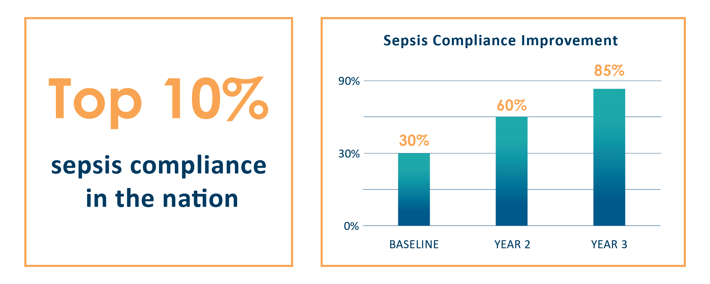 At a small Northwest hospital, the emergency medicine team was struggling to implement protocols that would satisfy the sepsis bundle, first introduced in 2015 by the Centers for Medicare and Medicaid (CMS), while also bringing meaningful care to patients who were dealing with the condition. Compliance hovered around 30 percent, and while the hospital had a sepsis committee, it required more involvement and a clear vision for seamless alignment of care throughout the hospital.